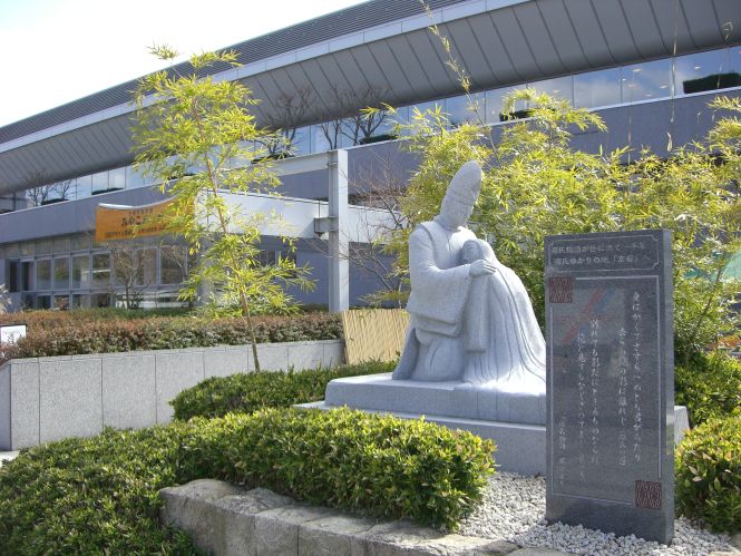 その前の庭にも源氏物語に関わる銅像が建っている。