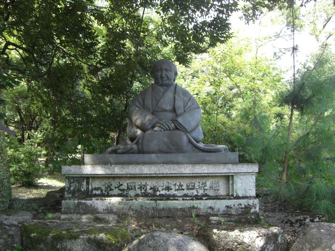 この銅像は、幕末の勤王家、津崎村岡局の像で、昭和3年(1928)、原型作者中牟田三次郎、設計者阪谷良之進の製作によって建てられた。