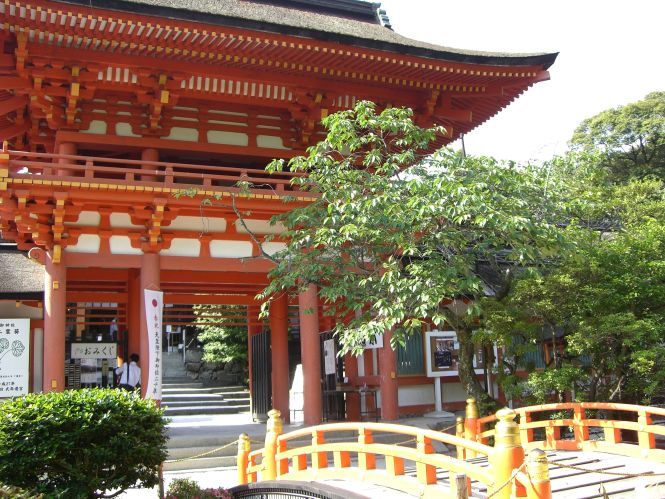 上賀茂神社は下鴨神社からさらに賀茂川を西北に約3Kmさかのぼった御園橋から、約100mで上賀茂神社の一の鳥居が見えてくる。
