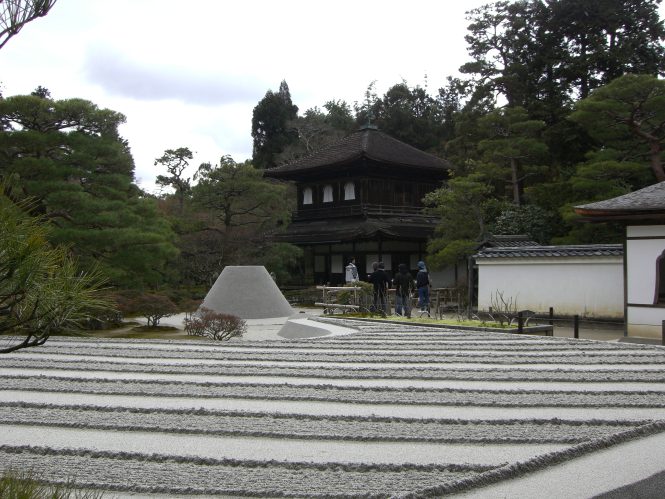 バスを「銀閣寺道」で降り、東に4分をど歩くと銀閣寺がある。