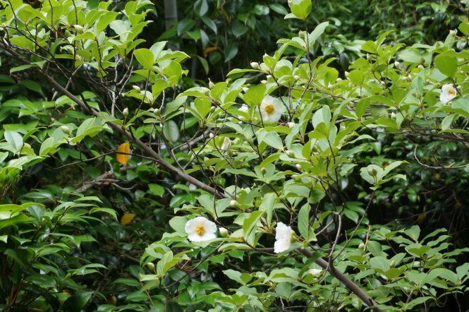 日本で沙羅双樹と呼ばれる夏椿は、梅雨の頃に白い花を咲かせ、朝咲いて夕方に散る儚い花である。