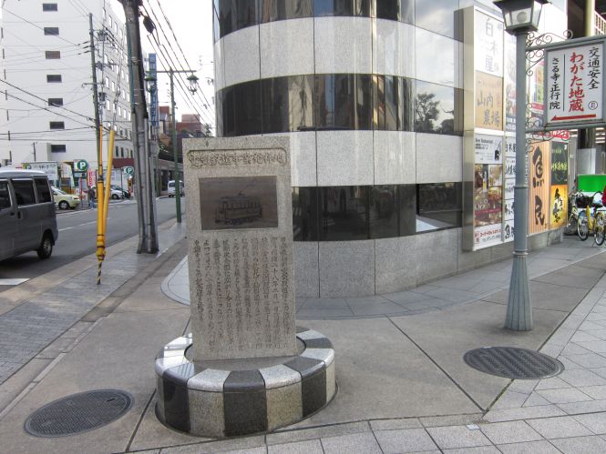 これは日本で最初に市電(路面電車)が走ったことを記す石碑である。