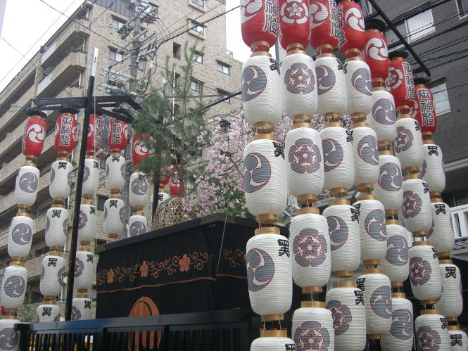7月17日には山鉾の巡行(後祭は7月24日)前の16日を宵山といい、家々の軒に神灯を掲げ、青簾をかける。