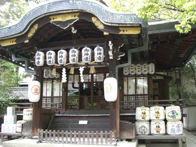 四条通から花見小路に入り一力亭の前を通り、南に突き当たると建仁寺の北門となり、この前を左に折れると「安井金毘羅宮」となる。