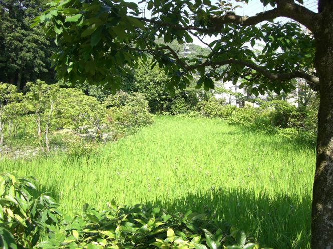 右方東側の沢地を「大田の沢」といい、野生のかきつばたが美しい。