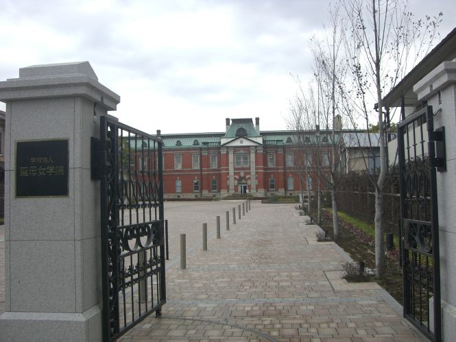 京阪電車「藤森」の駅から、名神高速の下を通り北に歩くとすぐに、聖母女学院の建物が見えてくる。