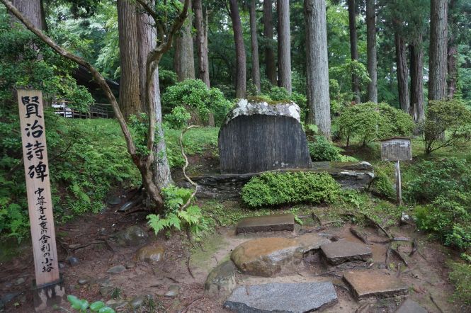詩碑の文字は、宮沢賢治自筆のものを、約二十倍に拡大して映したもので、金色堂建立八百五十年を記念し、昭和三十四年にたてられたものである。