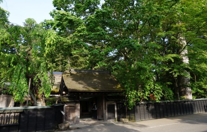 特に表町・東勝楽丁は、通りに面して黒板塀や生垣の屋敷が並び、前庭の樹木が閑静な佇まいをみせ、薬医門の武家屋敷とともに街並みを今に伝えている。