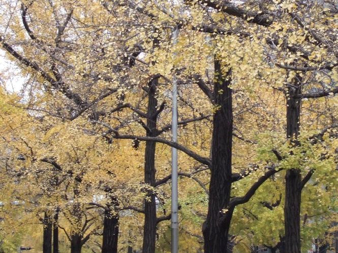 沿道には銀杏が植えられ、秋になるとそれが色づいて、あたり一面が銀色の道となるのである。