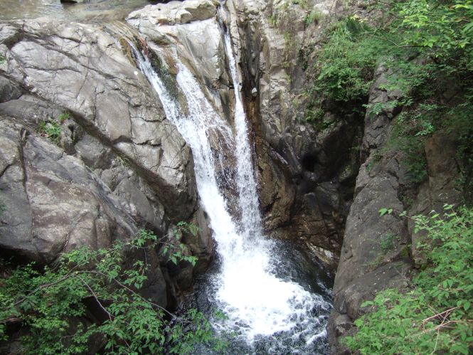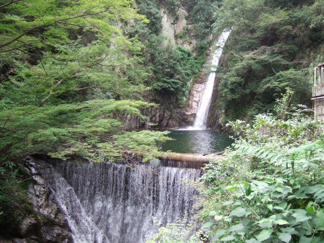夫婦滝のすぐ上にあり雄滝の滝壺から、夫婦滝が流れ落ちている。