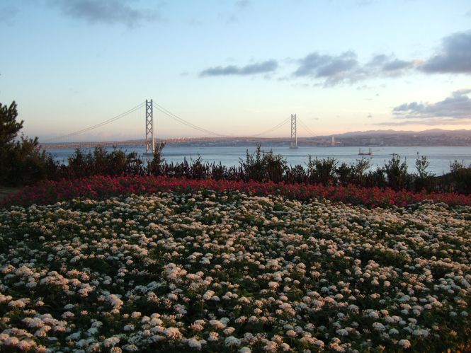 明石海峡大橋は、神戸の東舞子と淡路の岩屋とを明石海峡を横断して架けられた、全長3,911mの吊橋で、平成10年(1998)、神戸淡路鳴門自動車道の一部として開通する。