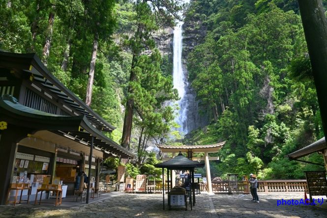 この神社から、那智の滝の正面を望むことが出来、滝の飛沫を身近に感じることが出来る。