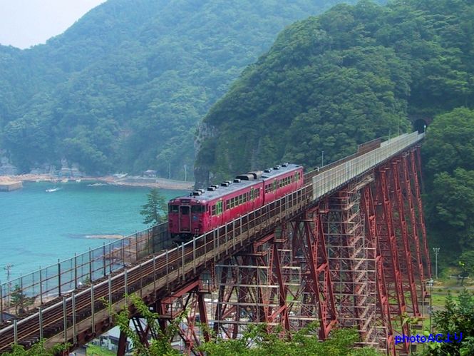 餘部鉄橋を列車が越えると、山陰地方に足を踏み入れたのだという思いにかられ、日本海の飛沫が感じられた。