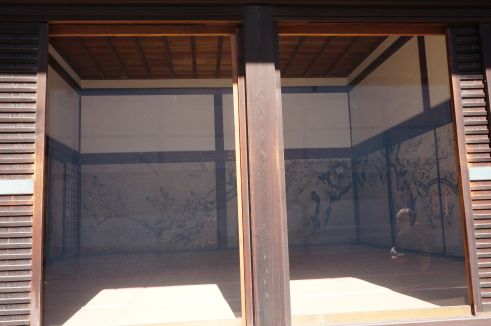 襖には原在照(はらざいしょう)が描いた、桜の花が咲き誇っている。