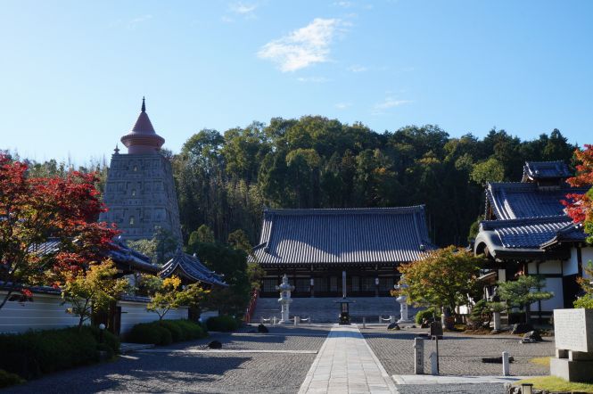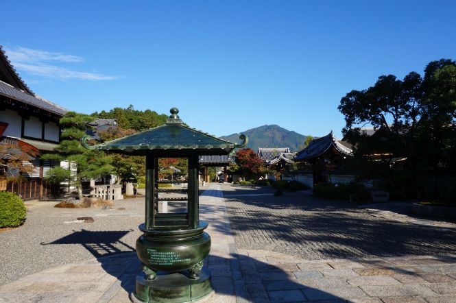 妙満寺の山門をくぐると、正面に「本堂」があり、その左に檀信徒が寄進をした「仏舎利大塔」、右に「方丈」があり、塔頭の成就院にあった「雪の庭」を、寺町二条から移転の際に、本坊の庭として移したものである。