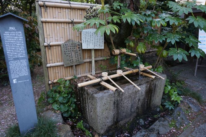 この水も同じ水脈です。この浄水で身も心も、そしてお札(お金)も洗い清め、平和で財宝のたまるよう大弁天様にご祈願いたしましょう。